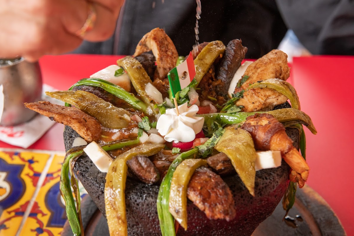 One of the standout dishes at Don Cuco is the Molcajete—a feast served on a sizzling hot stone, featuring juicy Angus beef strips, marinated chicken breast, and succulent jumbo shrimp wrapped in bacon, all accompanied by rich melted panela cheese and grilled vegetables. Priced at $46.00, this dish is perfect for sharing, ensuring that your dining companion will be as captivated by the flavors as you are.